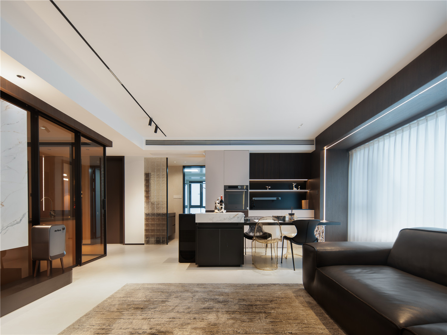 为了节约室内空间,厨房被打造为半开放式,同时借助吧台打造迷你就餐区域,有效提升空间利用率。