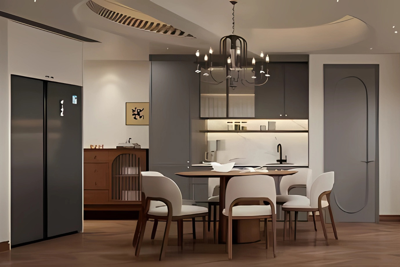 镂空嵌入式双开门大冰箱既可以满足日常使用需求,又避免了空间浪费。