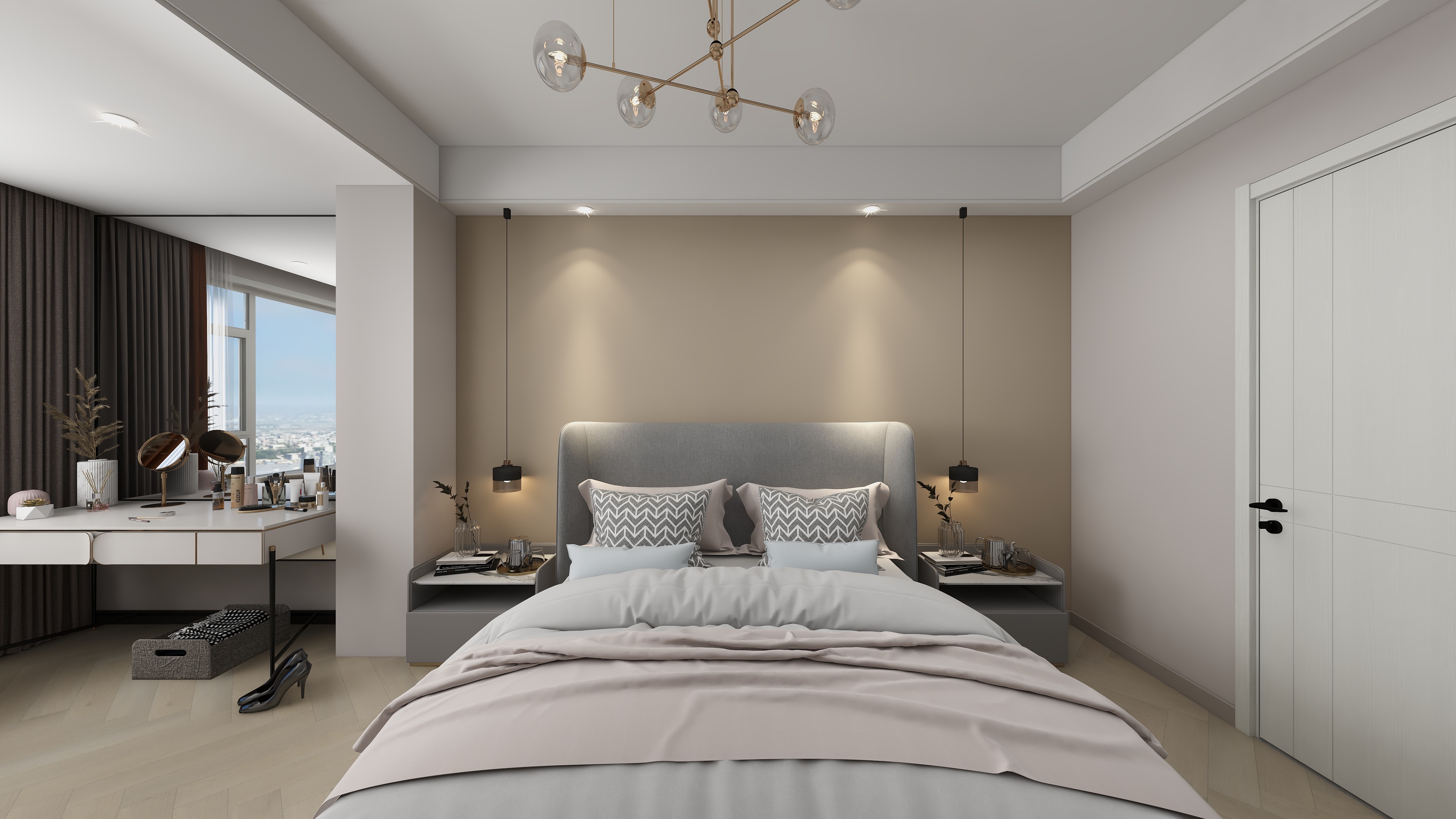 简约的墙顶面造型处理,面饰艺术涂料增加肌理感,高饱和度的大面色彩营造舒适氛围。